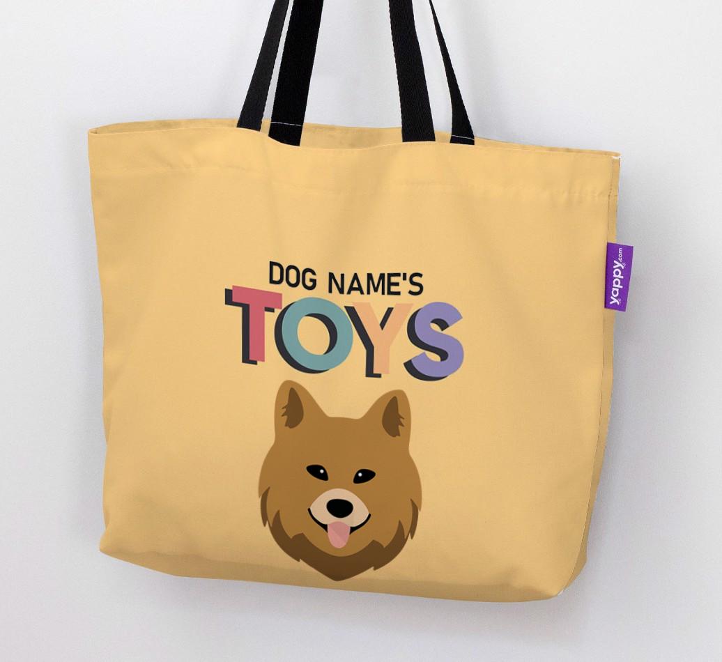 Don’t worry, we’ve got you covered with this pawsonalized canvas bag made for your Chow Shepherd’s toy collection!
