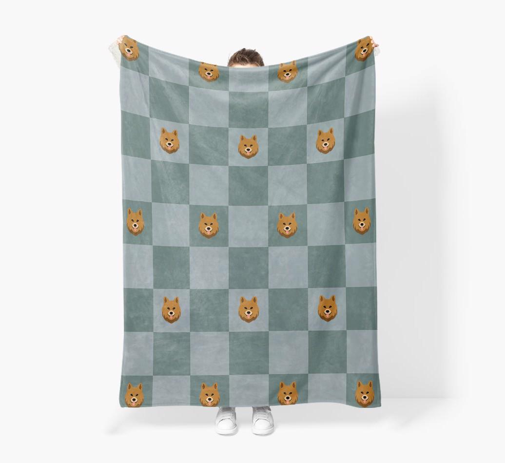'Checkboard' - Personalized Chow Shepherd Blanket: Premium Sherpa Fleece
