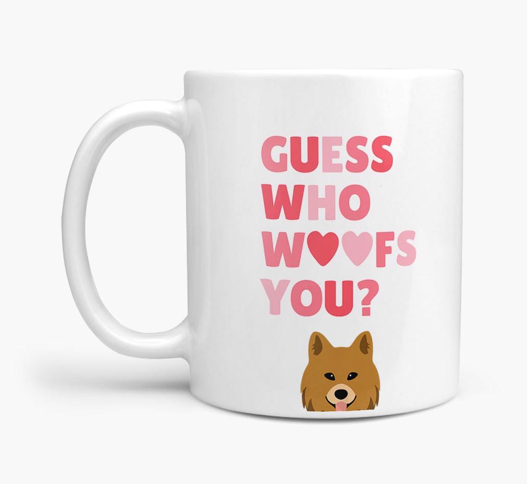 Personalized with Chow Shepherd's cute face, this adorable mug is perfect for showing off the one who "woofs" you - how sweet!