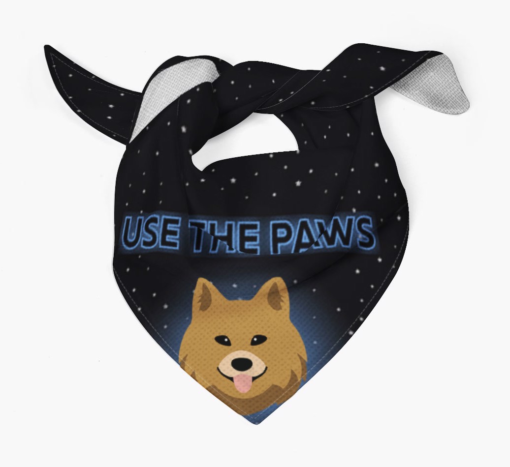 Featuring a starry night sky and glowing text, this bandana is made extra special with the addition of your Chow Shepherd's cute icon.