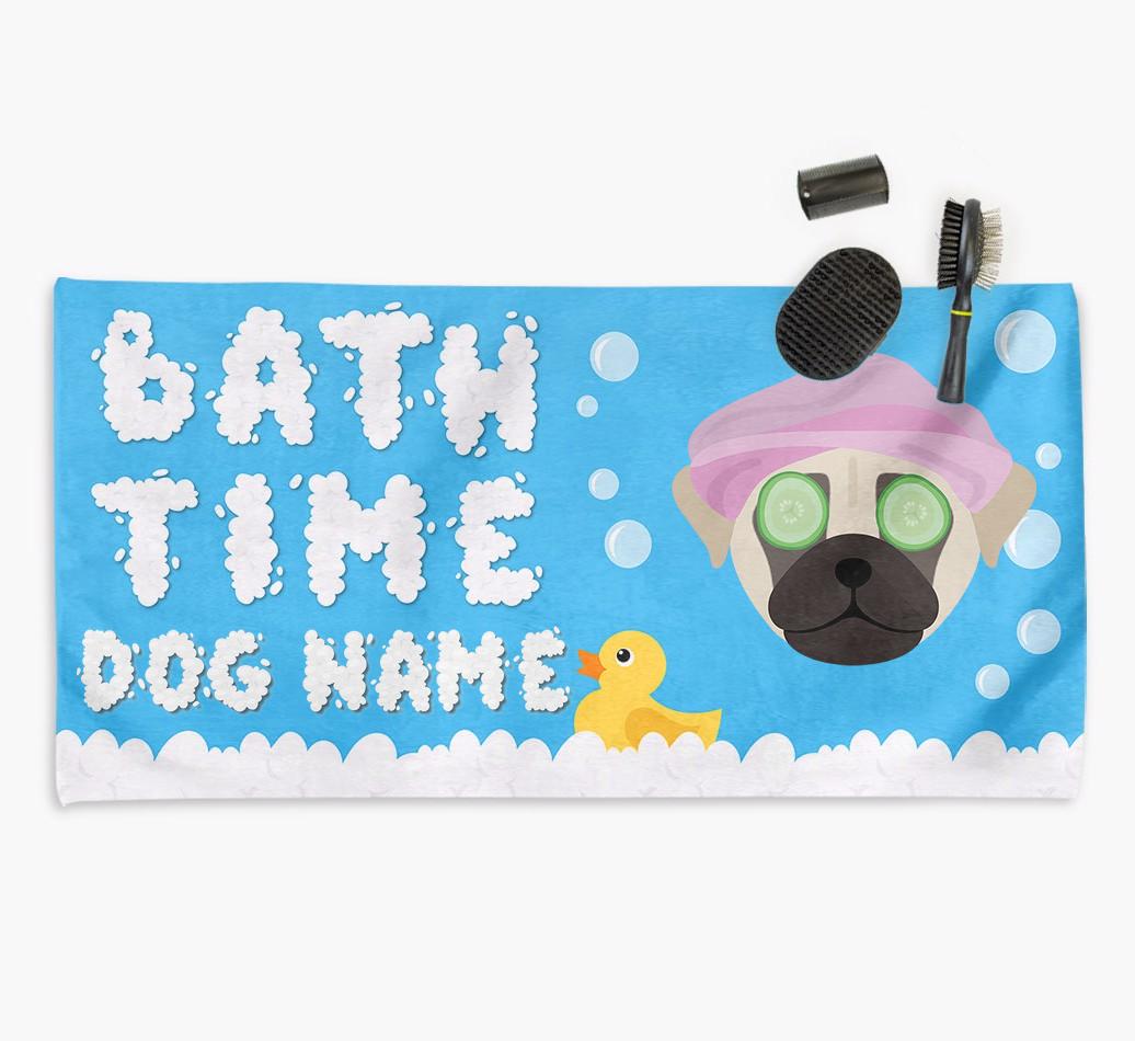 Does Your Chug love bubble baths? Once they've bathed, take their bathtime experience to the next level by wrapping them up in their very own towel, that's personalized just for them.