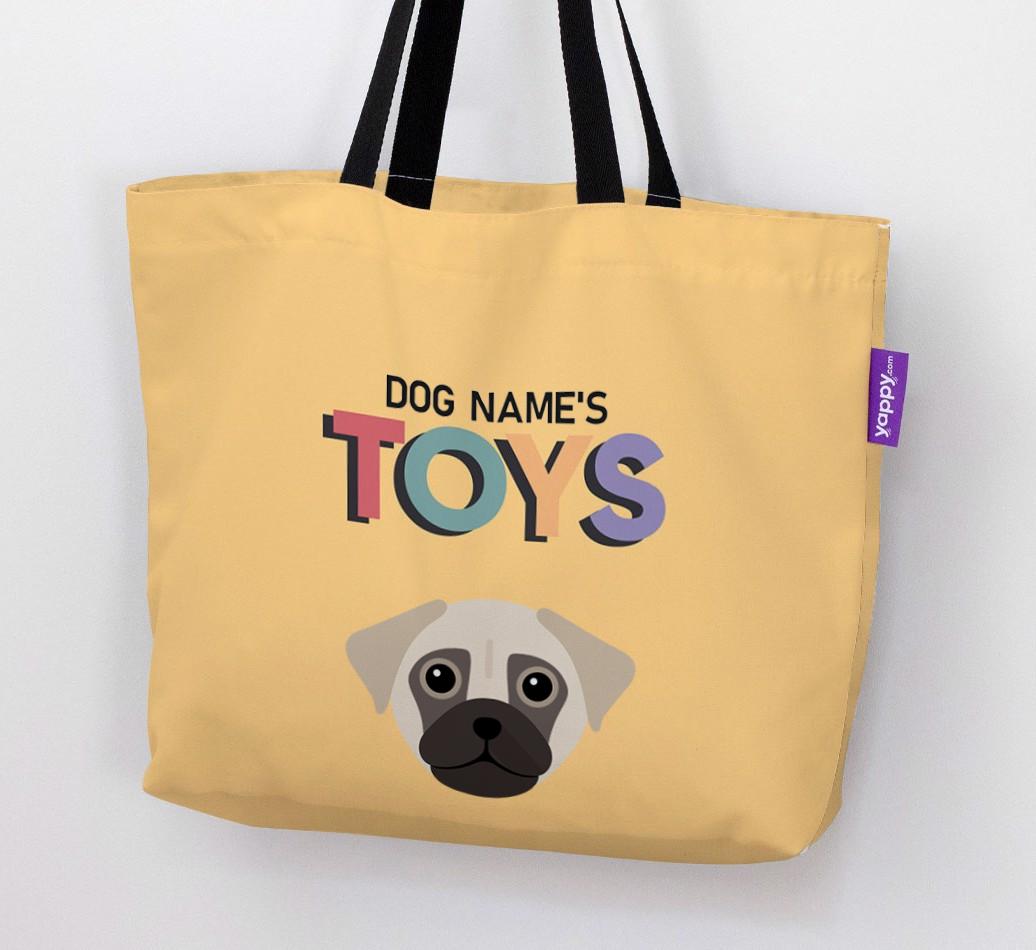 Don’t worry, we’ve got you covered with this pawsonalized canvas bag made for your Chug’s toy collection!