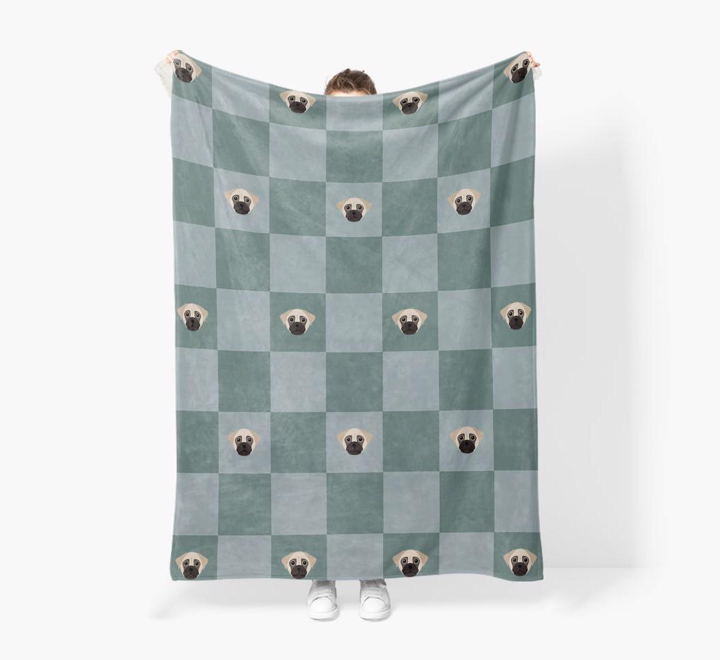 'Checkboard' - Personalized Chug Blanket: Premium Sherpa Fleece