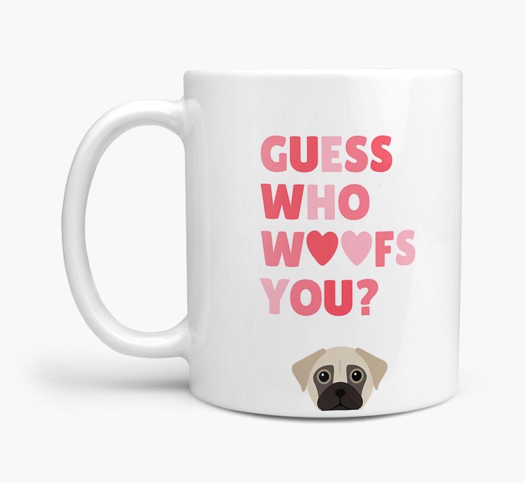 Personalized with Chug's cute face, this adorable mug is perfect for showing off the one who "woofs" you - how sweet!