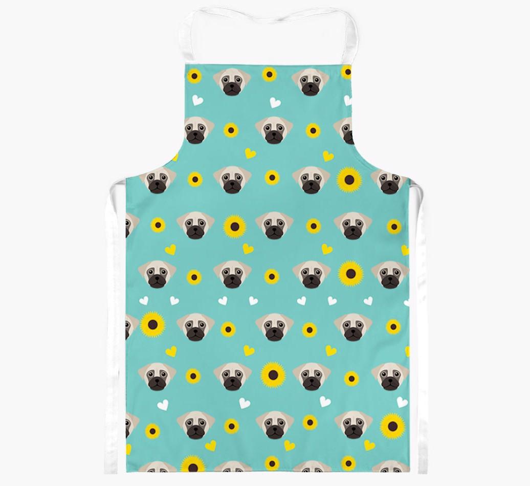 This apron has a delightful sunflower and heart pattern, and best of all - it's personalized with Chug's face too! This cute and colorful apron is sure to put a smile on every dog lover's face.