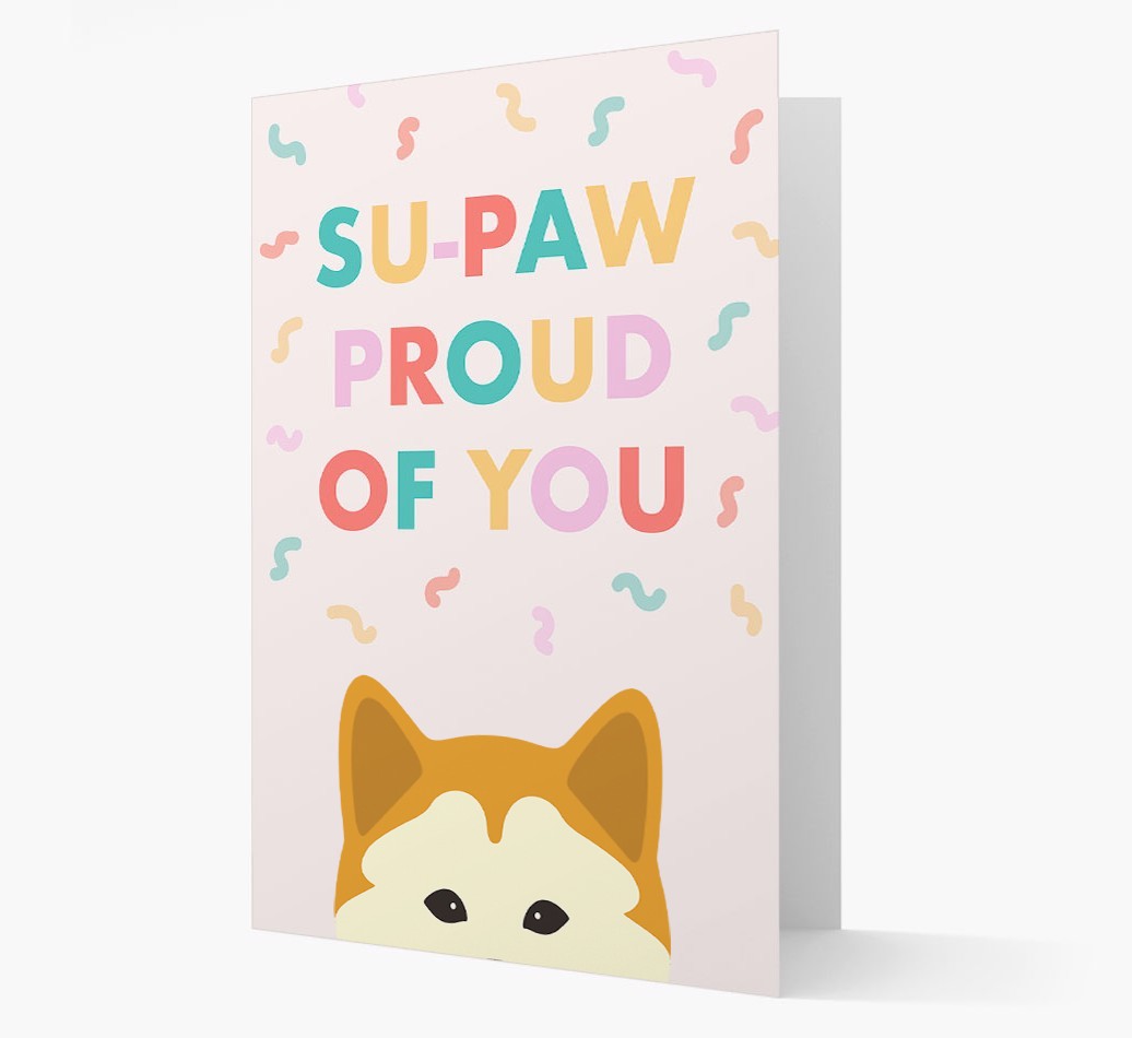 Has your loved one achieved something extra furbulous? Let them know that you and Chusky are su-paw proud of them with this cute card!