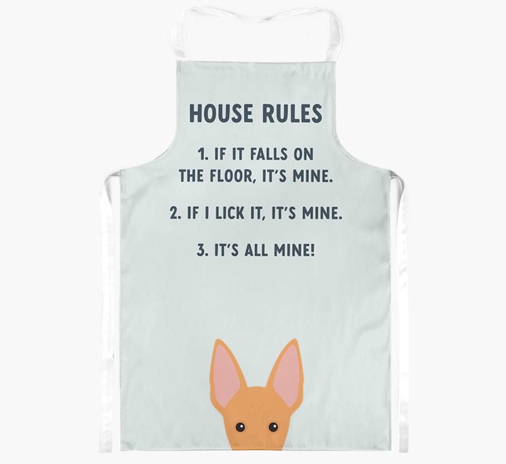 A fun way to show off your greedy pup, this stylish apron is personalized with your furry friend's icon and features their rules when it comes to food.