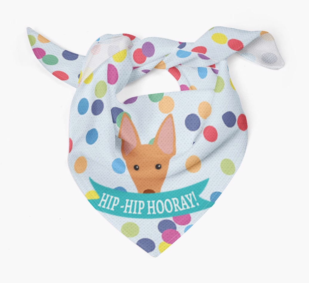 Featuring our famous Cirneco icon and the words ‘hip-hip hooray!’ printed upon a colorful confetti background, Your Cirneco Dell'Etna is sure to look pawty ready wearing this bandana.