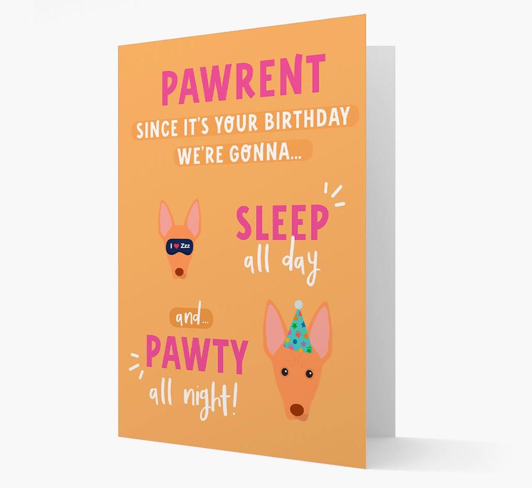 If Cirneco Dell'Etna woofs to pawty all day and sleep all night, this card encourages their pawrent to do it with them on their birthday!