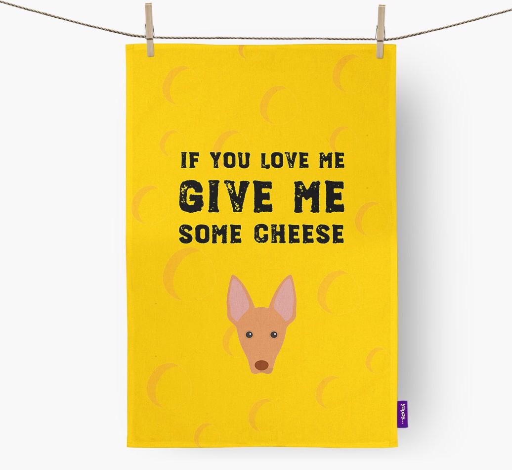 This exclusive Yappy dish towel features a pawsome Cirneco Dell'Etna icon upon a cheese themed background and Cirneco Dell'Etna's furvorite phrase ‘If you love me, give me some cheese’.