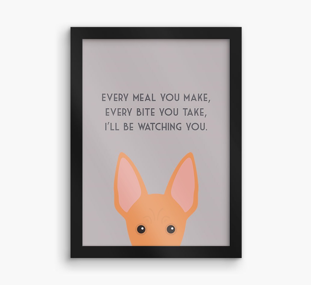 Printed with the words, ‘Every meal you make, every bite you take, I’ll be watching you’ and complete with our cute Cirneco peeking from the bottom of the design, this artwork will look great on display in the kitchen or anywhere Cirneco Dell'Etna likes to watch you eat!