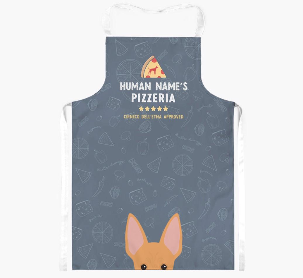 Featuring your furry friend's icon and lick of approval, plus your chosen human name, this apron is pawfect for anyone who considers themselves a pizza maestro in the kitchen. Available in a choice of 5 rustic colors, it'll make any Cirneco lover happy.