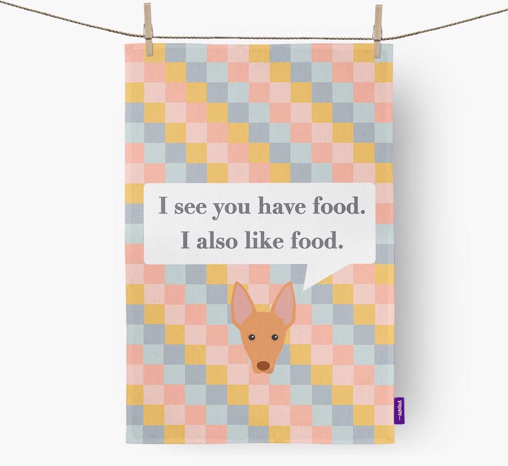 If your Cirneco Dell'Etna is a full time snack machine, this dish towel may be the ideal way to warn your guests.