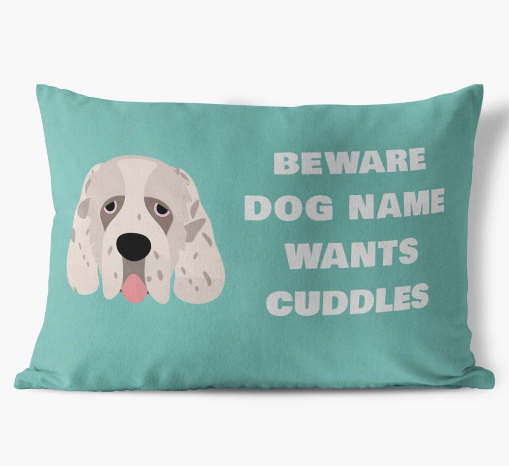 Beware of Cuddles: Personalized Clumber Spaniel Soft Touch Pillow