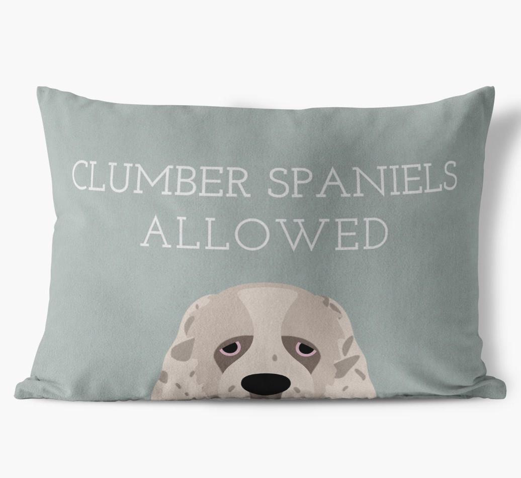 This exclusive, luxurious pillow is printed with the words ‘Clumber Spaniels Allowed’, which I’m sure Your Clumber Spaniel would definitely approve of.