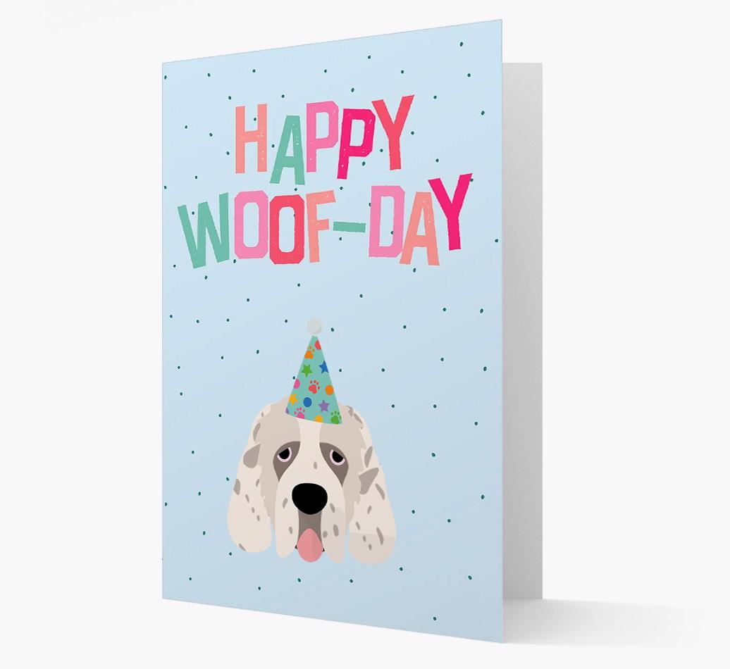 'Happy Woofday' - Personalized Clumber Spaniel Birthday Card