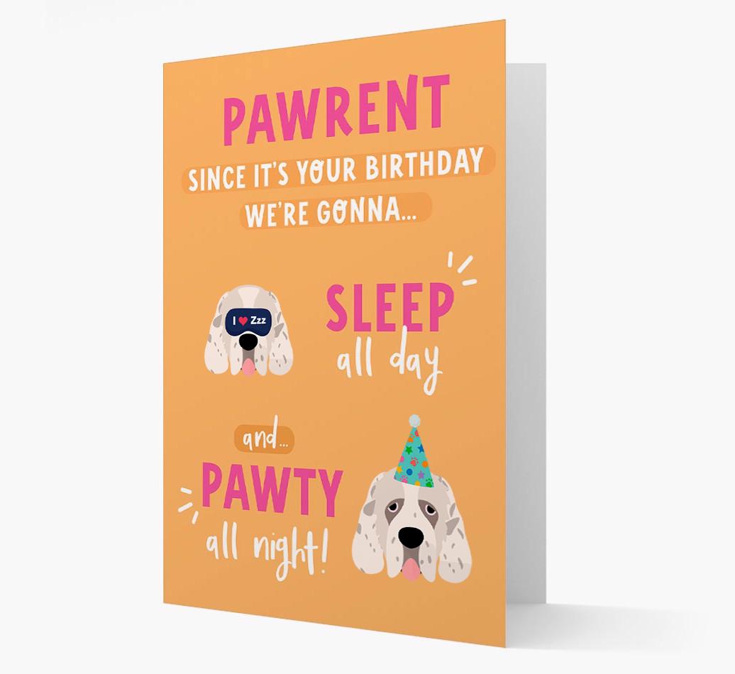 Sleep All Day, Pawty All Night: Personalized Card with Clumber Spaniel Icon
