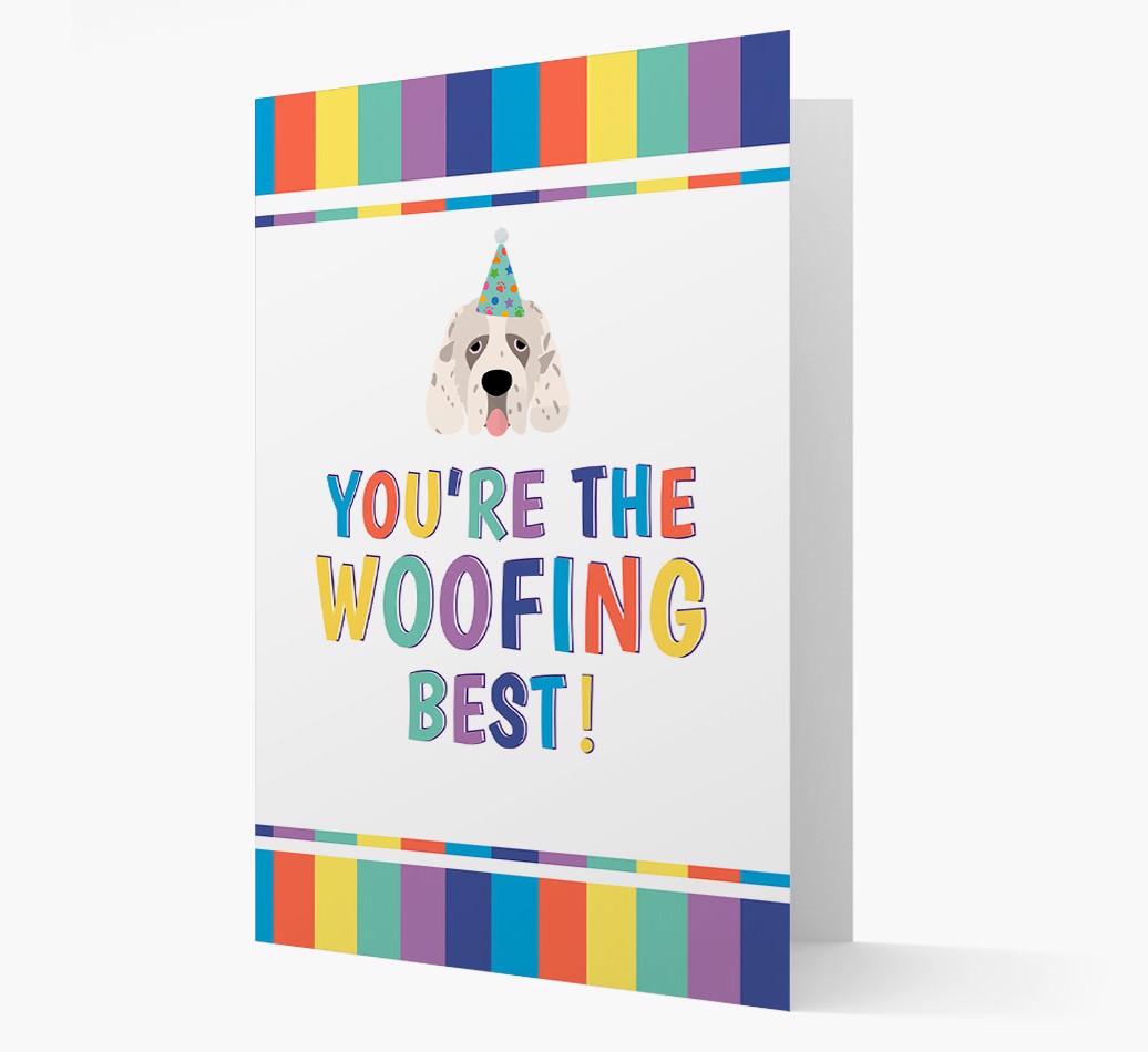 Featuring your chosen Clumber Spaniel icon donning a pawty hat, this card is sure to go down a woofing storm!