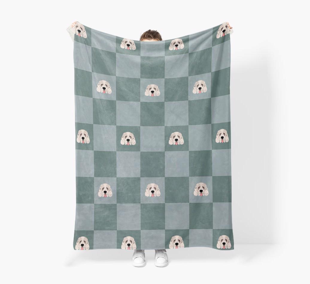 'Checkboard' - Personalized Clumber Spaniel Blanket: Premium Sherpa Fleece