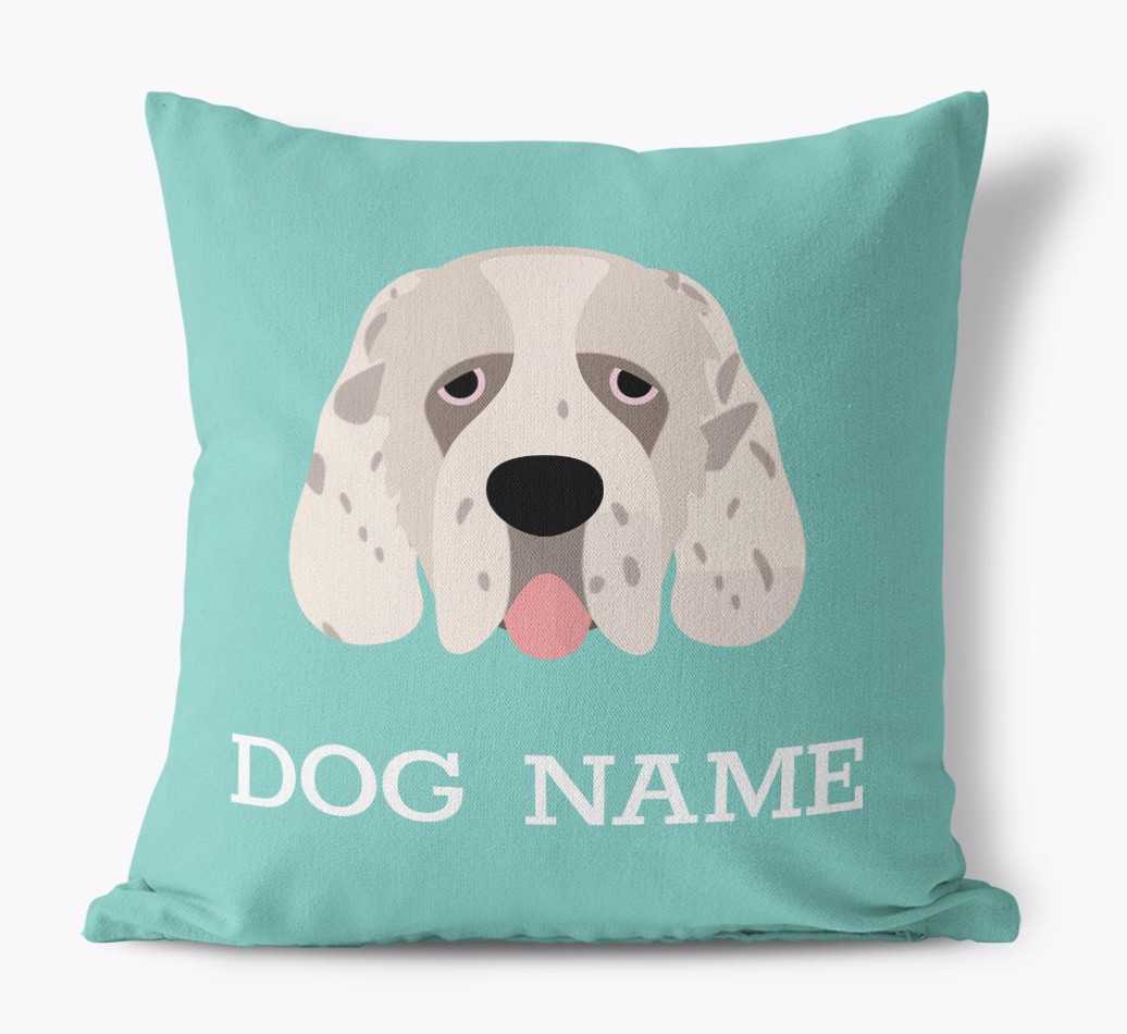 This Yappy exclusive canvas pillow features a large Clumber Spaniel icon and it's personalized with your beloved dog's name to make it extra special.