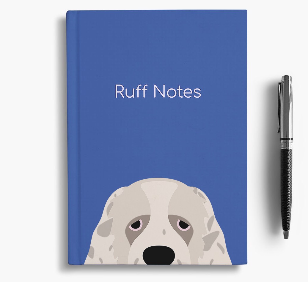 The front cover features our exclusive Clumber Spaniel peeking icon and is printed with the words, ‘Ruff Notes’, whilst the back is printed with the words ‘Live. Laugh. Woof.’.