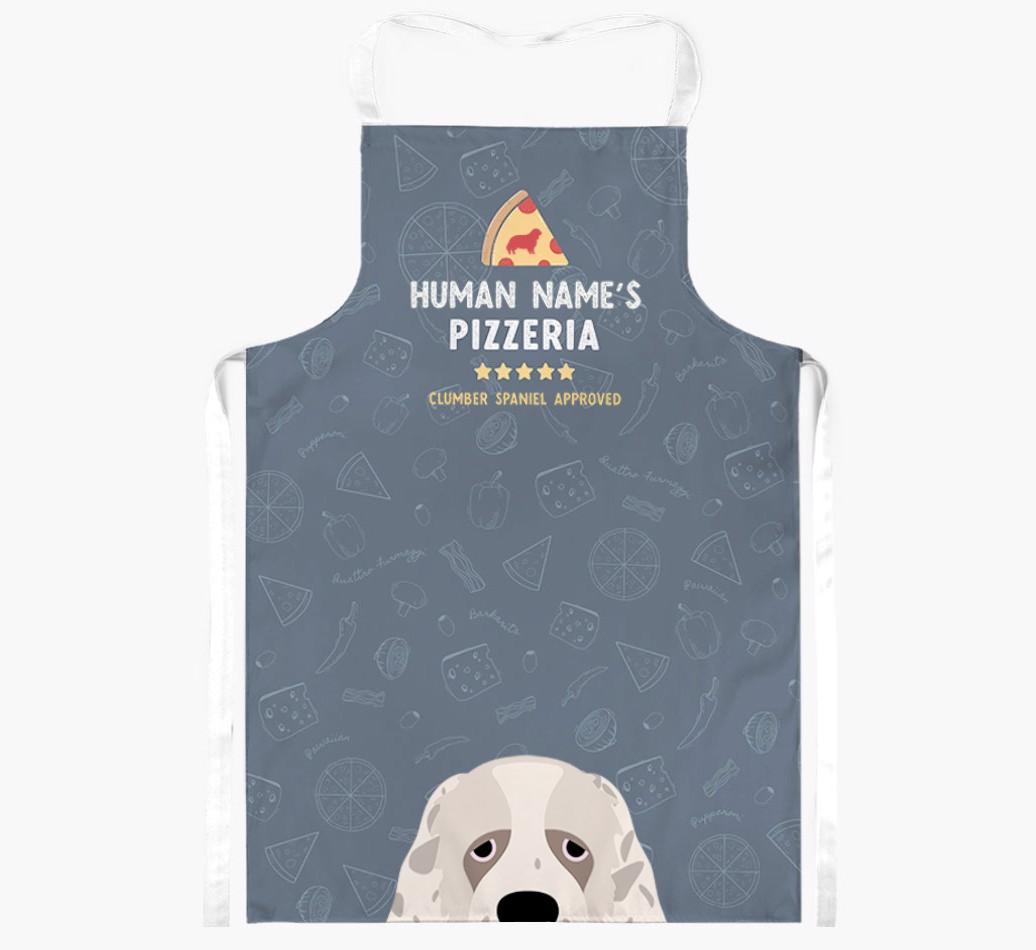 Featuring your furry friend's icon and lick of approval, plus your chosen human name, this apron is pawfect for anyone who considers themselves a pizza maestro in the kitchen. Available in a choice of 5 rustic colors, it'll make any Spaniel lover happy.