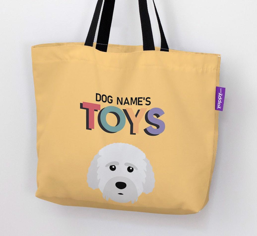 Don’t worry, we’ve got you covered with this pawsonalized canvas bag made for your Cockachon’s toy collection!