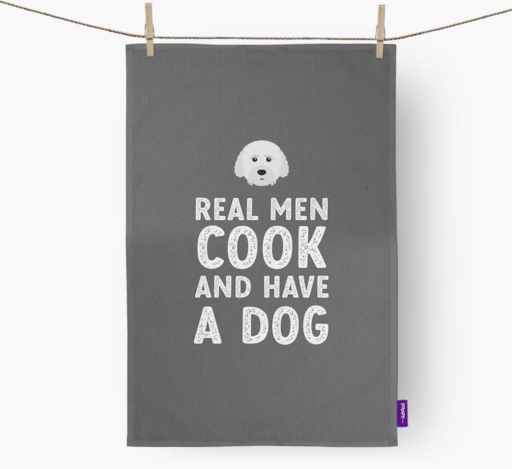 Real Men Cook And Have A Dog: Personalized Cockachon Dish Towel
