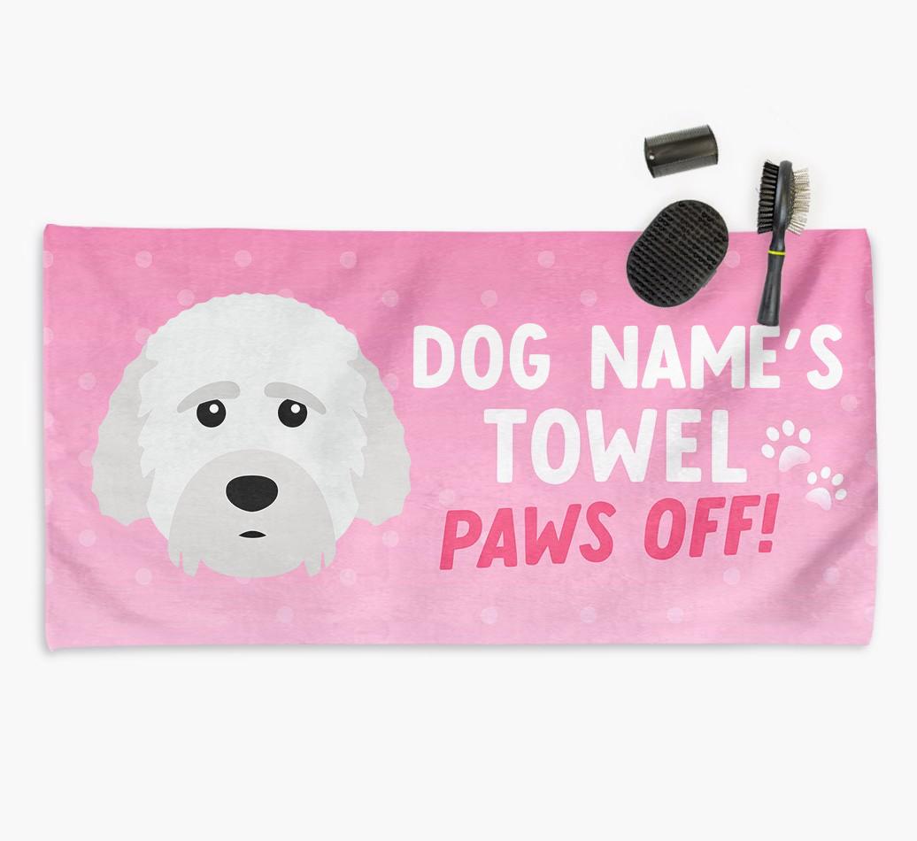 Perfect for messy pups and for pampering your Cockachon at bathtime, this soft and absorbent towel is made for cleaning your mucky pup and drying them off in a flash. It's personalized with Cockachon's name and icon and is printed with a message for everyone else to keep their paws off it!
