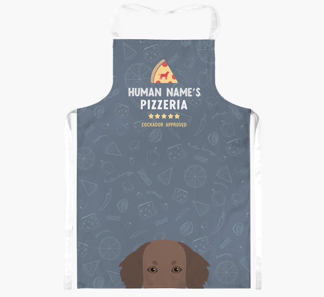 Featuring your furry friend's icon and lick of approval, plus your chosen human name, this apron is pawfect for anyone who considers themselves a pizza maestro in the kitchen. Available in a choice of 5 rustic colors, it'll make any Cockador lover happy.