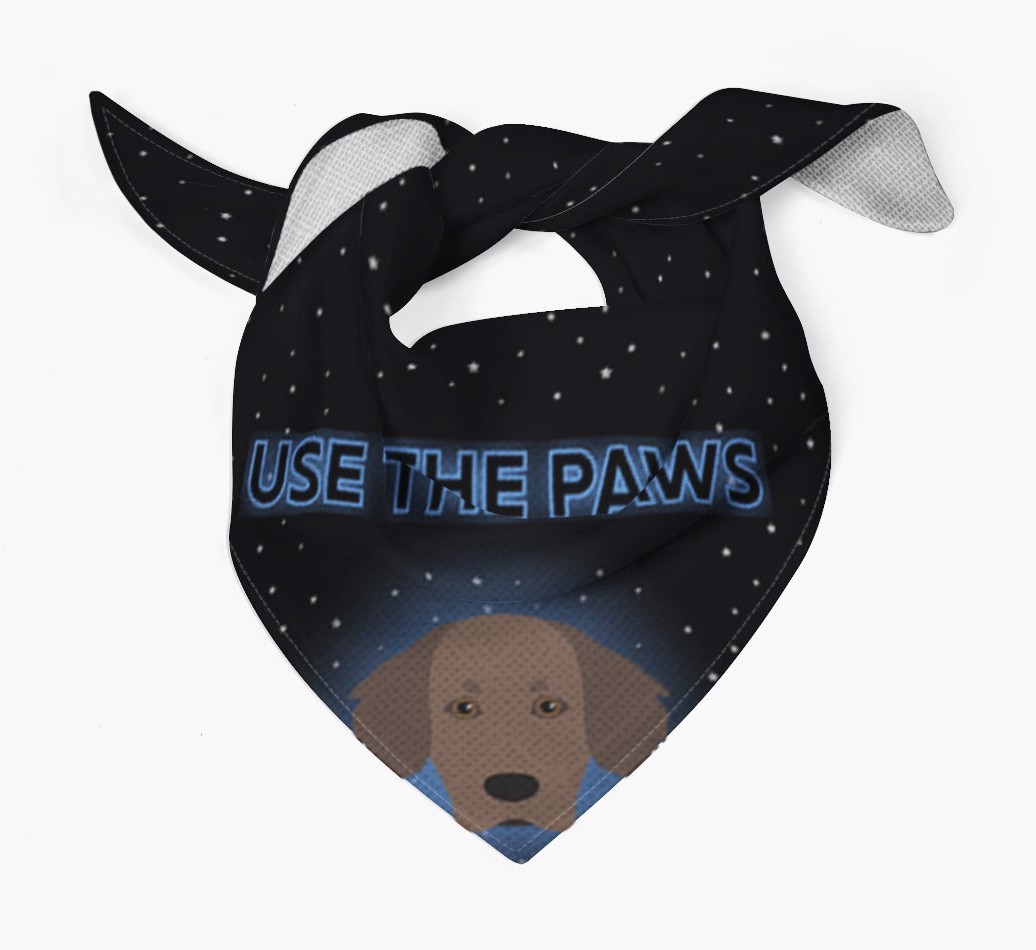 Featuring a starry night sky and glowing text, this bandana is made extra special with the addition of your Cockador's cute icon.