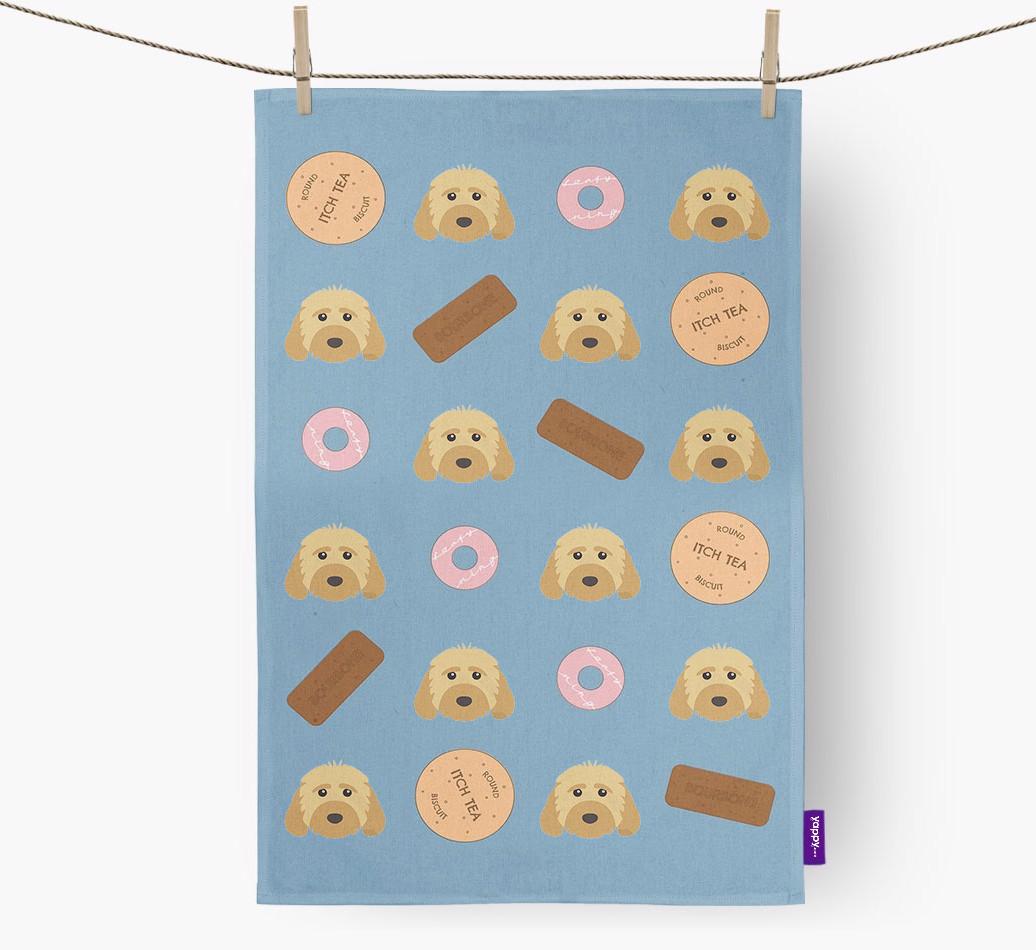 This woofly dish towel features Cockapoo icons amongst some of our most loved cookies, it is available in four different colors and is sure to make you smile every time you see it.