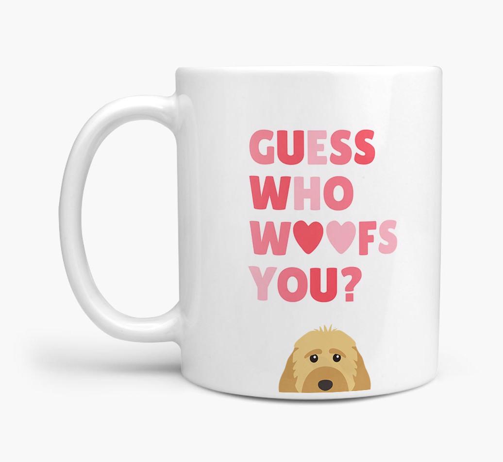 Personalized with Cockapoo's cute face, this adorable mug is perfect for showing off the one who "woofs" you - how sweet!