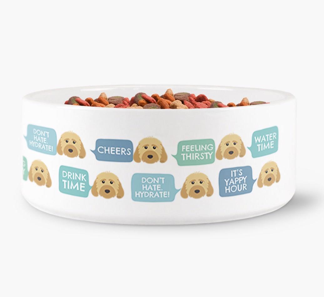 This water bowl is full to the brim with Your Cockapoo’s favorite thirst-quenching phrases!