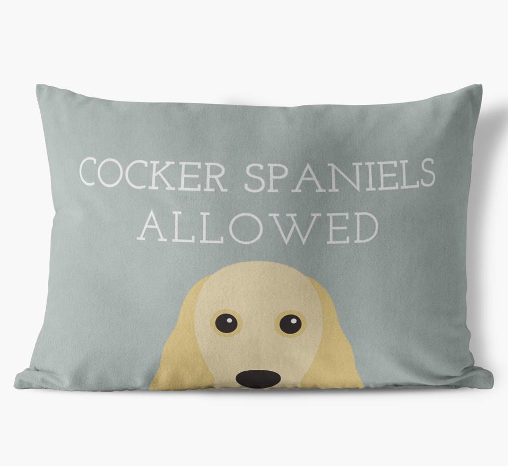 This exclusive, luxurious pillow is printed with the words ‘Cocker Spaniels Allowed’, which I’m sure Your Cocker Spaniel would definitely approve of.