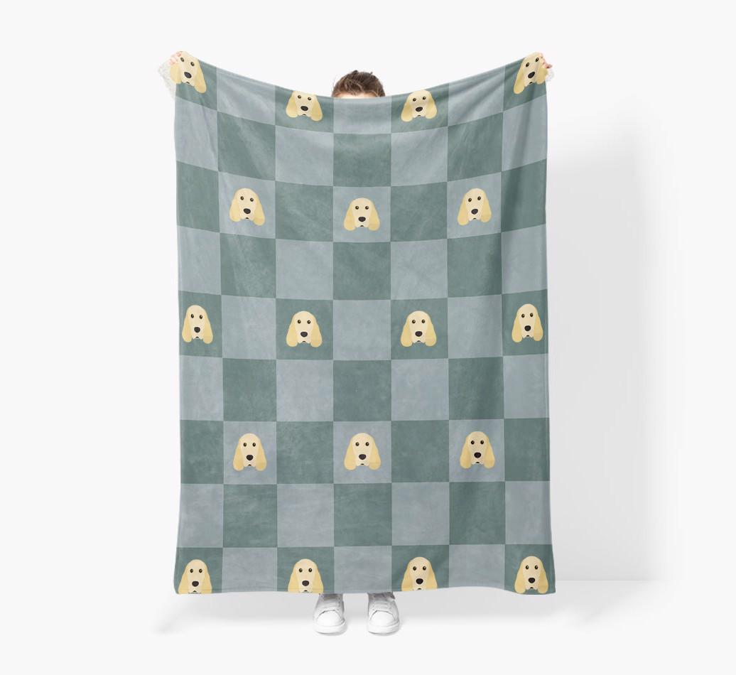 'Checkboard' - Personalized Cocker Spaniel Blanket: Premium Sherpa Fleece