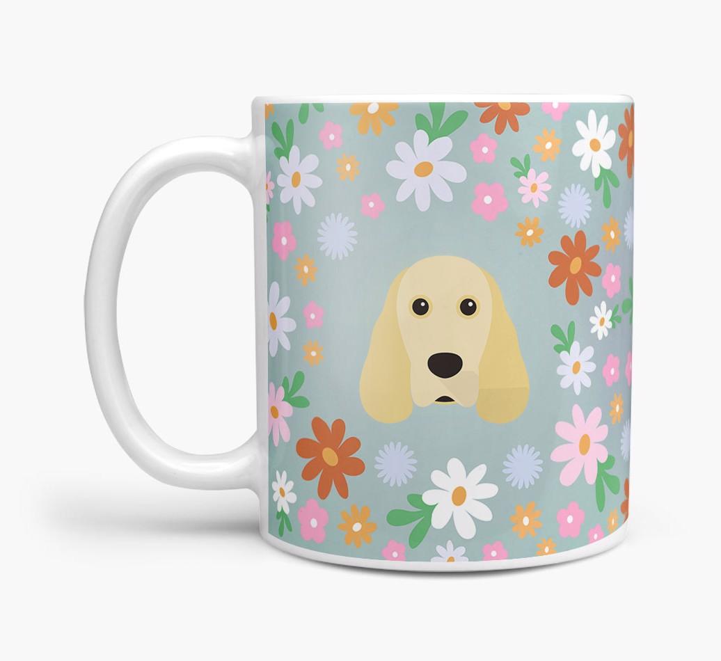 Featuring a colorful bunch of flowers, this mug is printed with the words 'woofly grandma' on one side of the mug and your Spaniel's cute icon on the other. Bloomin' lovely!