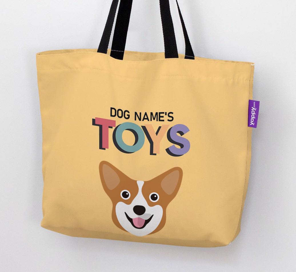 Don’t worry, we’ve got you covered with this pawsonalized canvas bag made for your Corgi’s toy collection!