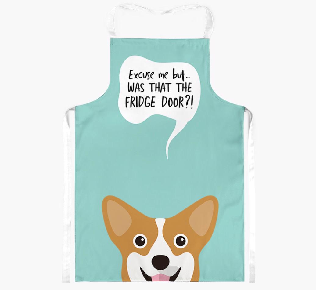 Featuring your hungry hound's cheeky icon and available in five eye-catching colors, this apron is a must-have for parents of greedy pups!