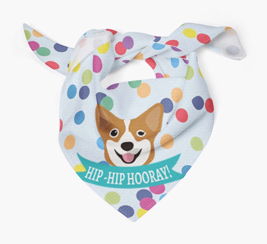 Featuring our famous Corgi icon and the words ‘hip-hip hooray!’ printed upon a colorful confetti background, Your Corgi is sure to look pawty ready wearing this bandana.