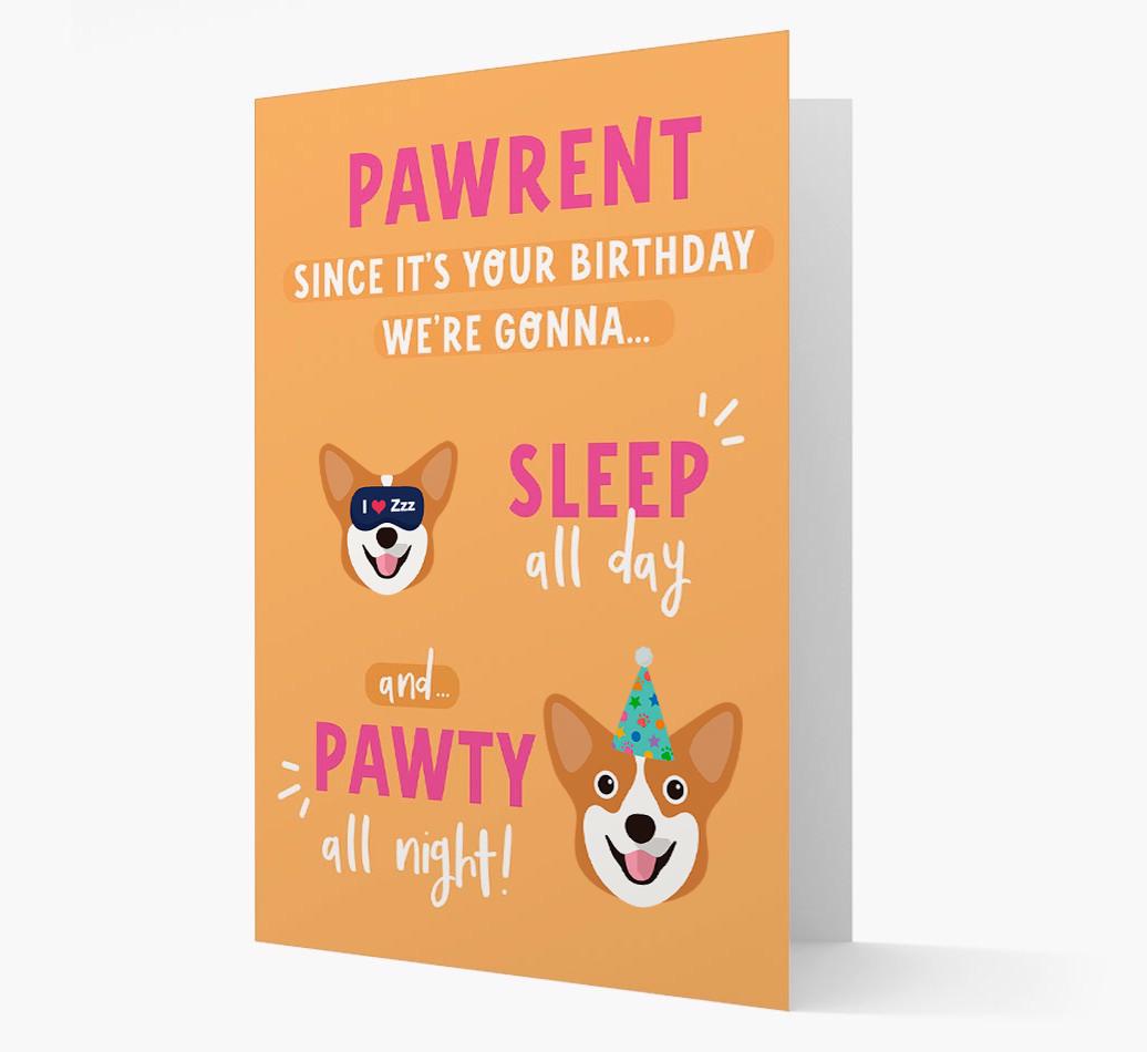 Sleep All Day, Pawty All Night: Personalized Card with Corgi Icon