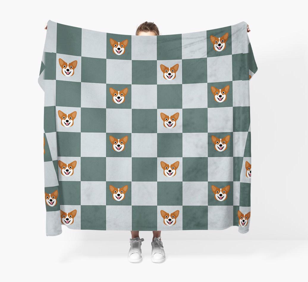 'Checkerboard' - Personalized Corgi Throw Blanket
