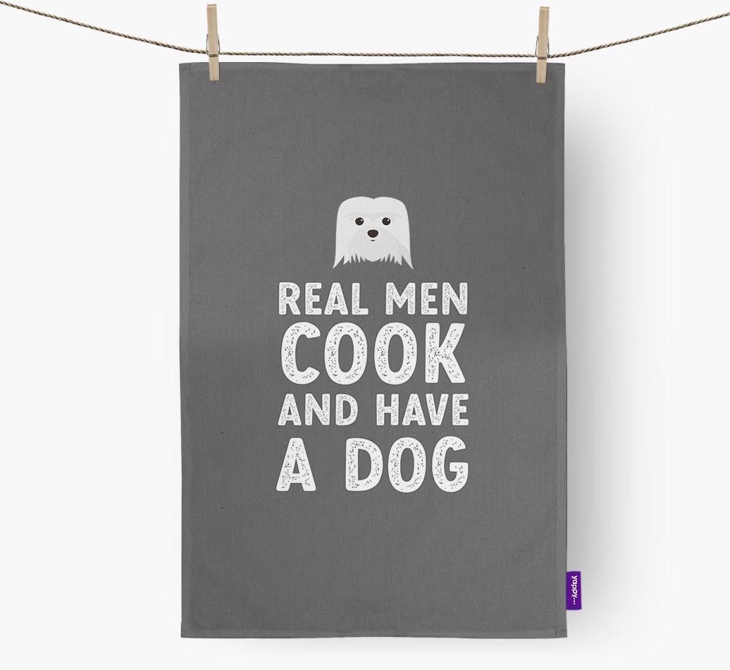 Real Men Cook And Have A Dog: Personalized Coton De Tulear Dish Towel