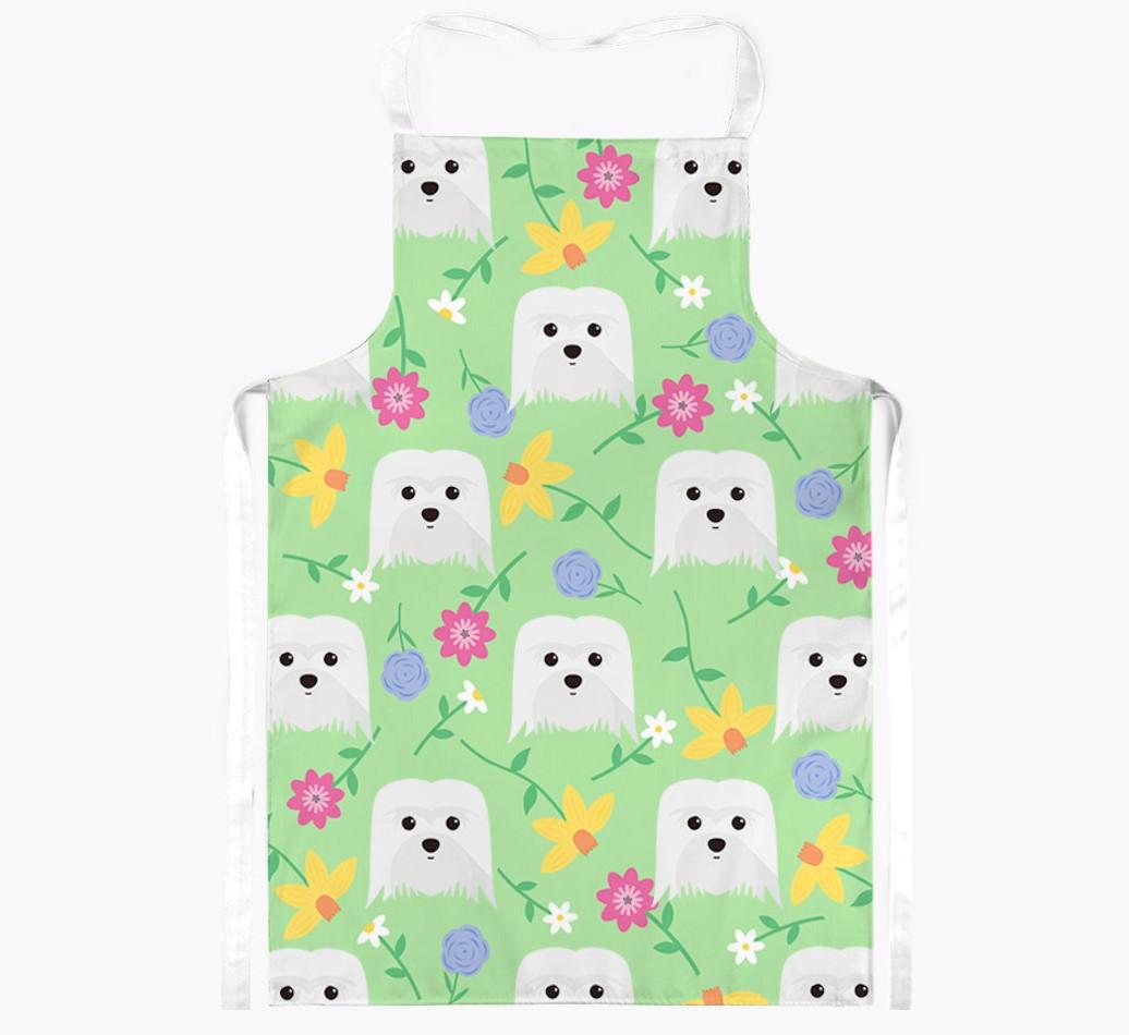 Featuring a gorgeous pattern of flowers and your dog's adorable face, this vibrant apron is bursting with canine charm and flowery fun - perfect for adding a splash of color to your kitchen.