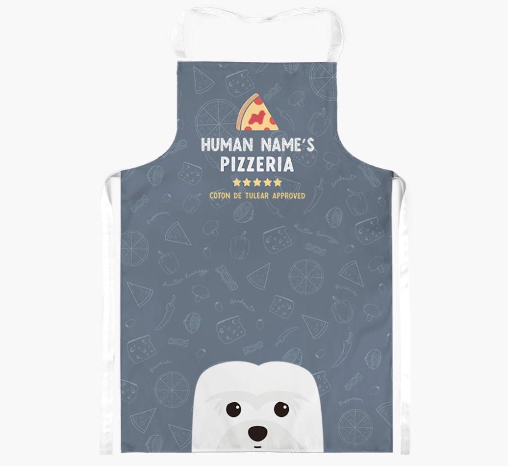 Featuring your furry friend's icon and lick of approval, plus your chosen human name, this apron is pawfect for anyone who considers themselves a pizza maestro in the kitchen. Available in a choice of 5 rustic colors, it'll make any Coton lover happy.