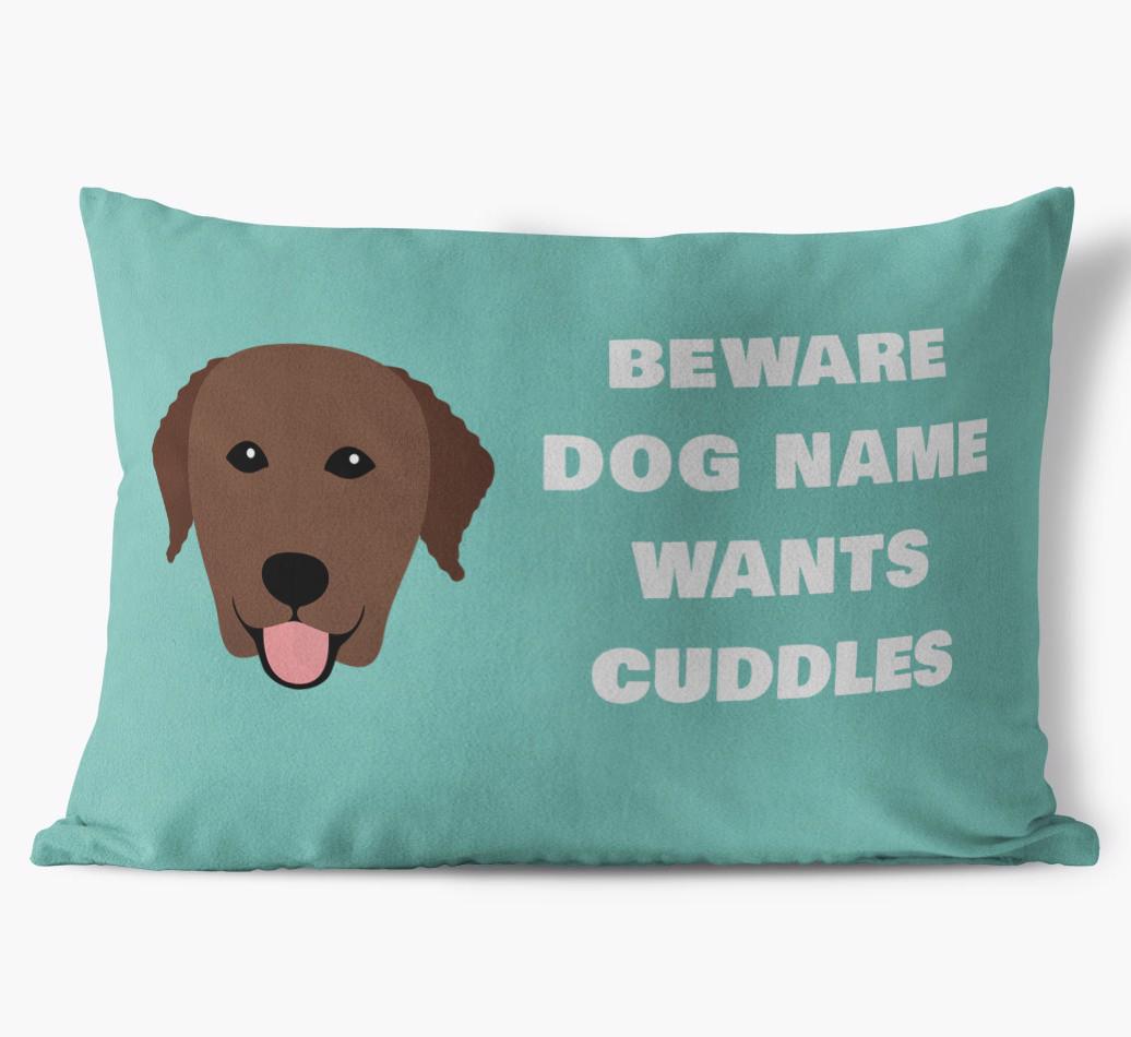 Beware of Cuddles: Personalized Curly Coated Retriever Soft Touch Pillow
