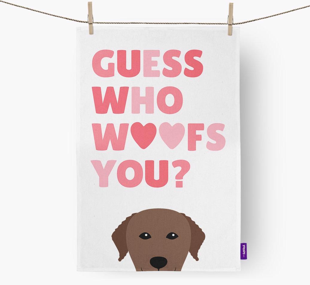 'Guess Who Woofs You?' - Personalized Curly Coated Retriever Dish Towel