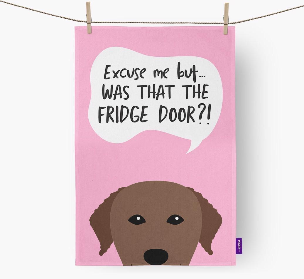 'Was That The Fridge Door?!' - Personalized Curly Coated Retriever Dish Towel