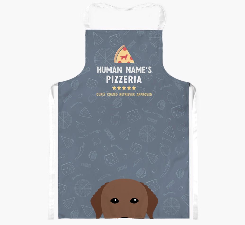 Featuring your furry friend's icon and lick of approval, plus your chosen human name, this apron is pawfect for anyone who considers themselves a pizza maestro in the kitchen. Available in a choice of 5 rustic colors, it'll make any Curly lover happy.
