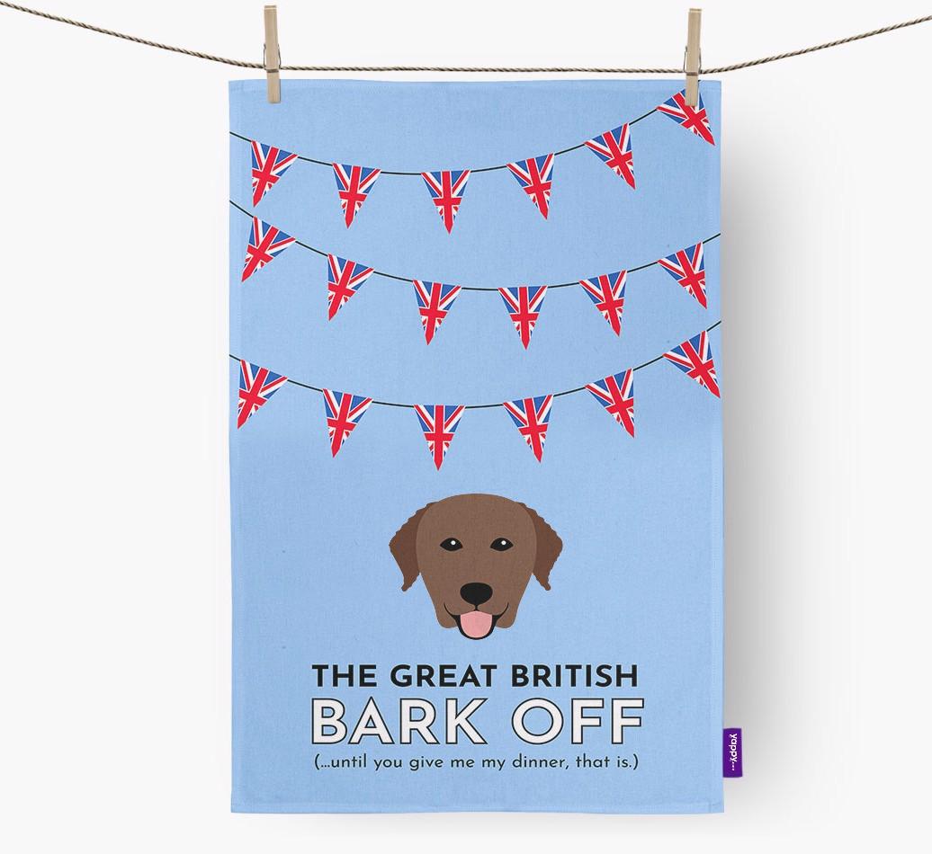 The Great British 'Bark' Off Dish Towel with Curly Coated Retriever Icon
